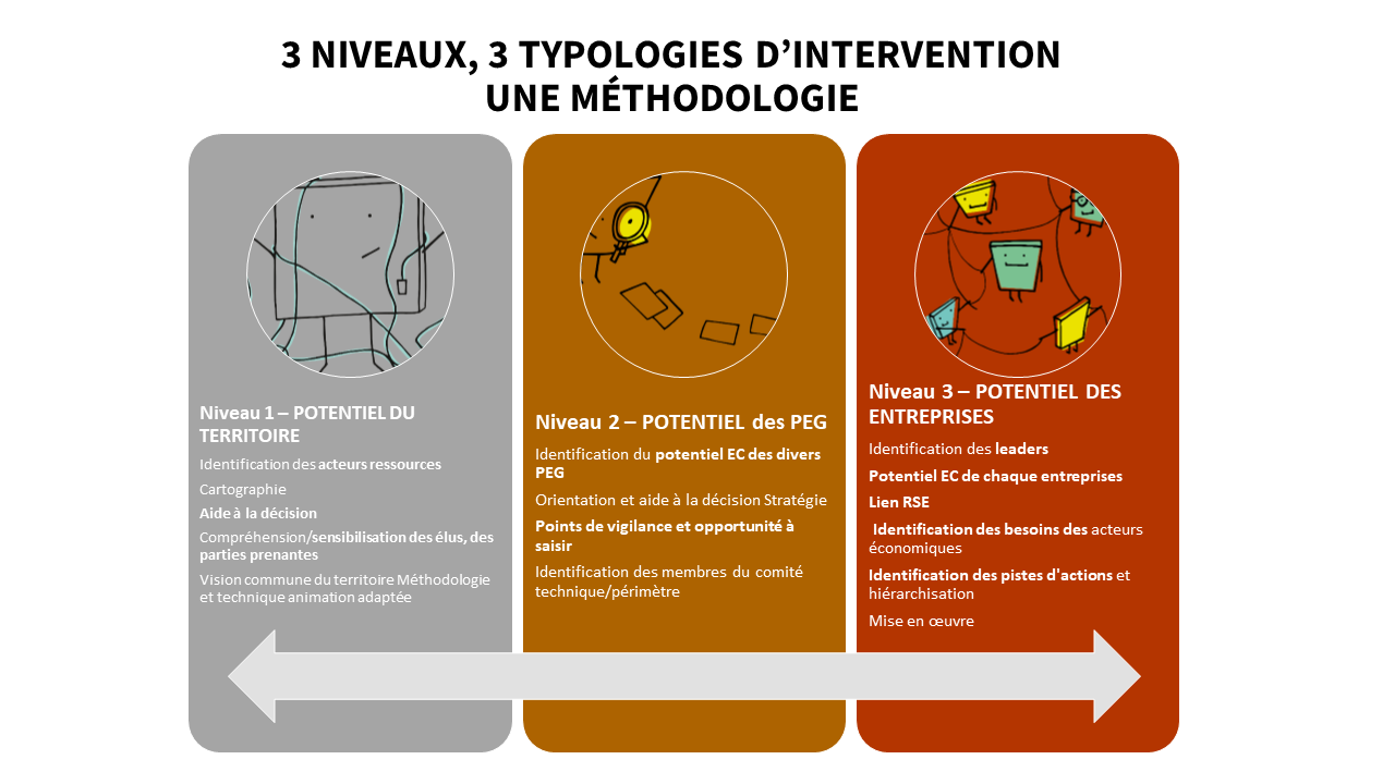 Afin d’appliquer des modèles relevant de l’économie circulaire qui peuvent induire de nouveaux panels d’innovation sociale (coopération, gestion, etc.), il est nécessaire de soutenir et d’accompagner les organisations territoriales dans le déploiement de l’EIT à long terme. Cependant, Comment s’assurer que le territoire possède les caractéristiques les plus favorables pour assurer une » success story » pérenne ? Comment choisir son périmètre d’intervention (ex : zones d’activités, centre-ville, port, etc.) qui présentent un fort potentiel pour lancer opérationnellement une démarche EIT vouée à se pérenniser ? Comment mobiliser les entreprises à s’impliquer ?